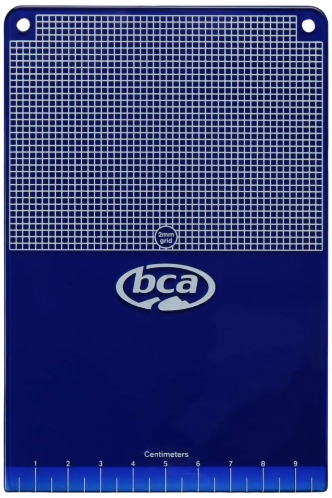 The BCA polycarbonate crystal card provides a surface to study snow crystals in the backcountry. Thanks to its polycarbonate material, it does not absorb as much radiation as aluminum cards and is therefore ideal for sunnier climates.