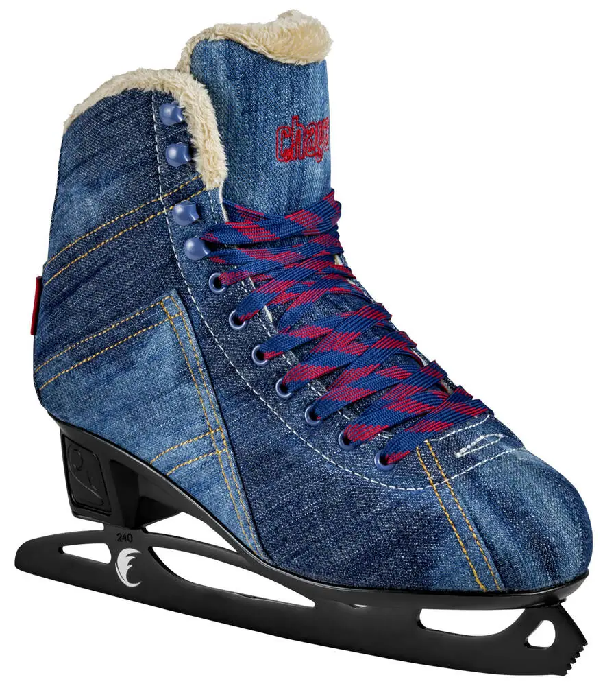 Geniet in stijl en comfort met een paar Chaya Billie Jean kunstschaatsen deze winter. Met een harde buitenkant, bedekt in een waterafstotend denim-achtig materiaal en een zachte binnenkant met een thermo geïsoleerde faux fur, weet je zeker dat je urenlang plezier beleeft op het ijs.