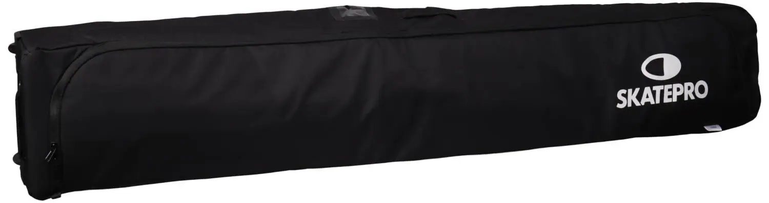 Our own padded SkatePro Snowfall Ski Bag is designed to store 2 pairs of skis, 1 pair of boots, poles, and some outerwear.