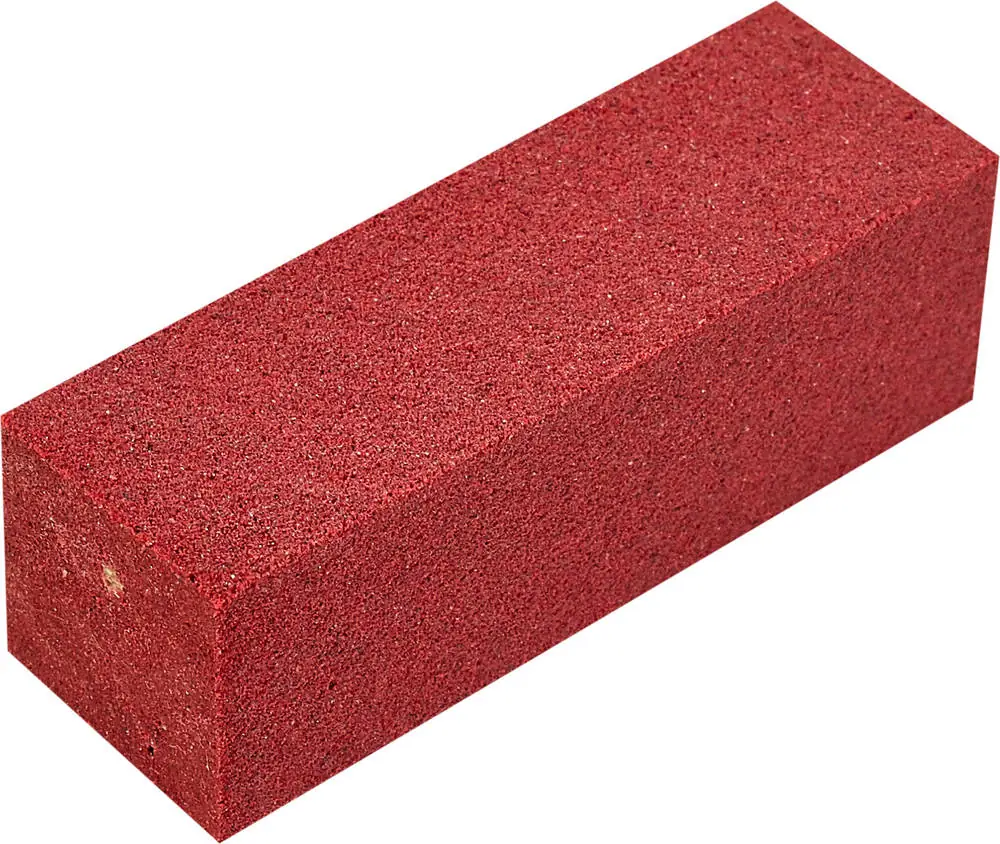 This medium hard (red color) gummy stones lets you remove rust and burrs from the steel edge.